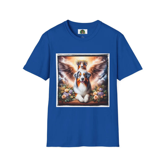 Australian Shepherd Angel Wings And Flowers Unisex Tee With Celestial Wings Design Graphic
