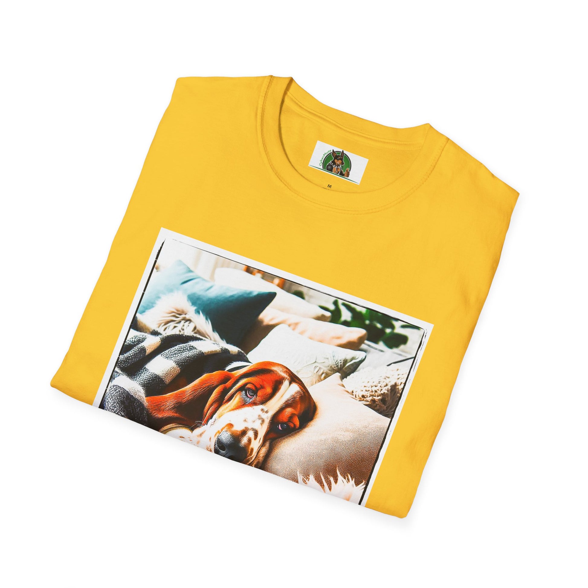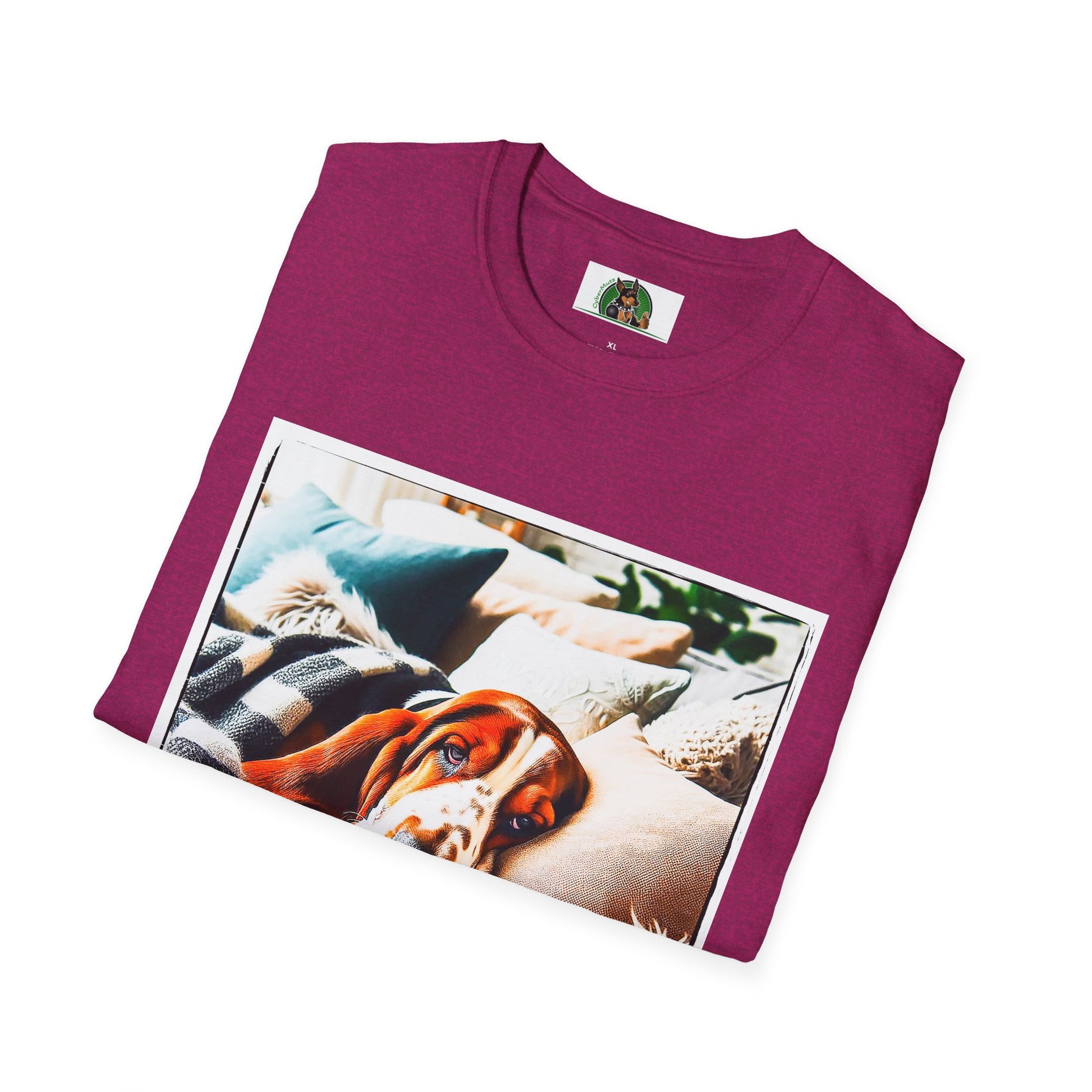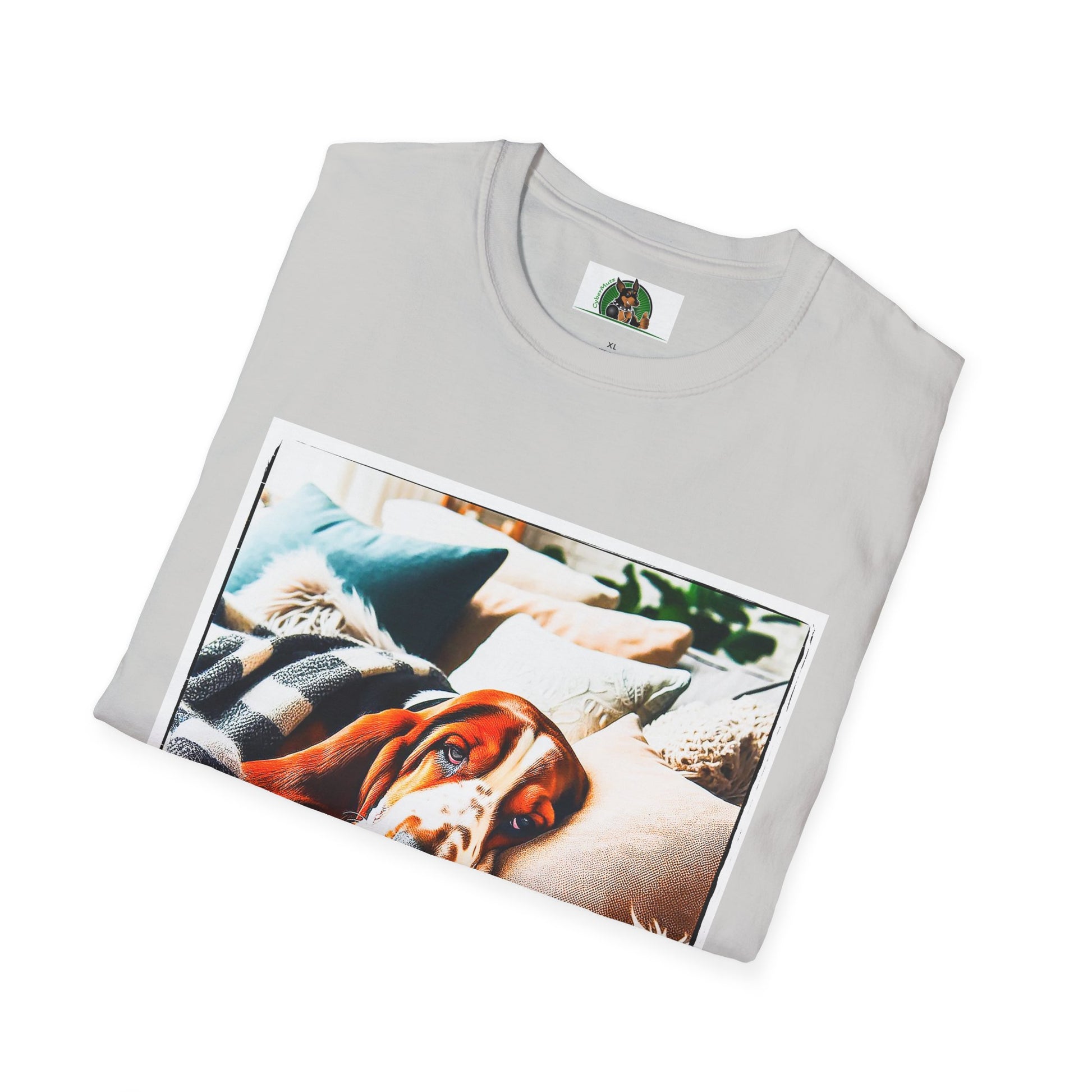 “Whether lounging on the couch or exploring new scents, Basset Hounds know how to relax and enjoy life. This T-shirt is a perfect tribute to the breed’s calm yet curious nature. With a stylish illustration of a laid-back Basset, it’s a comfy and fun choice for any proud Basset parent.”