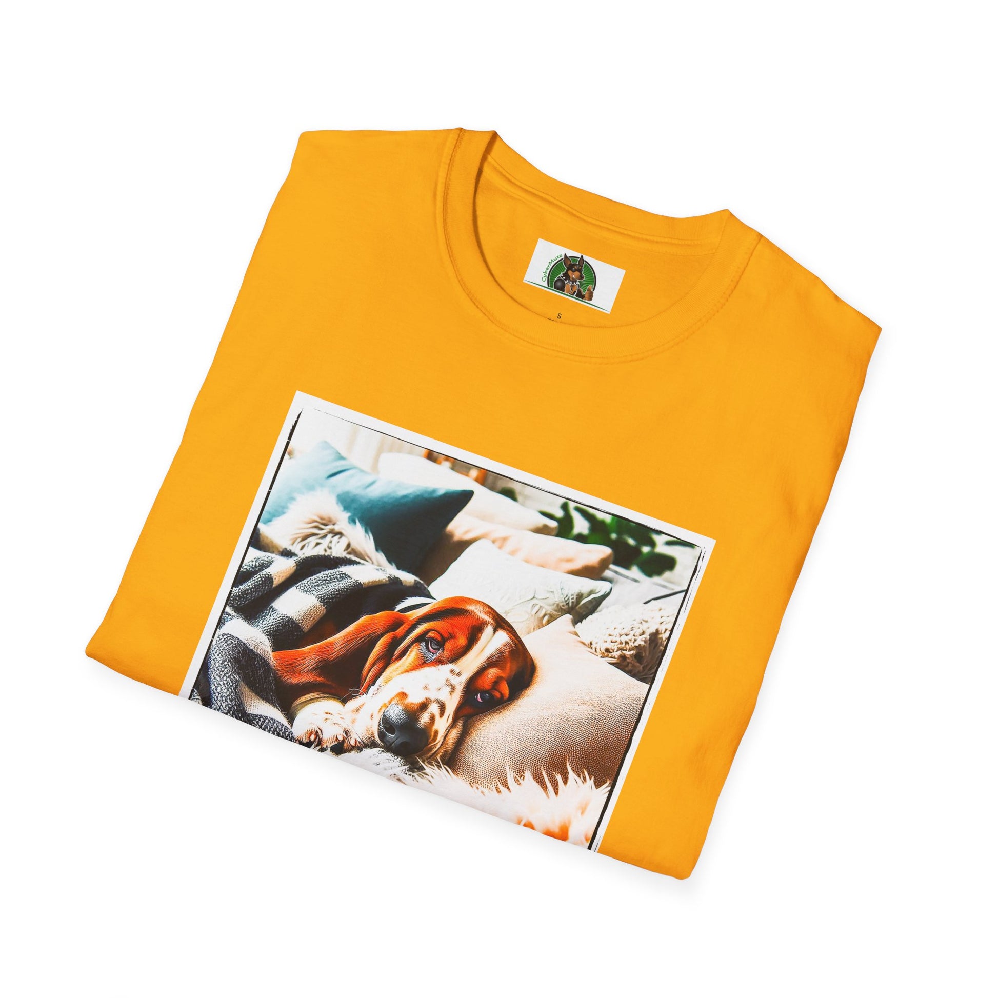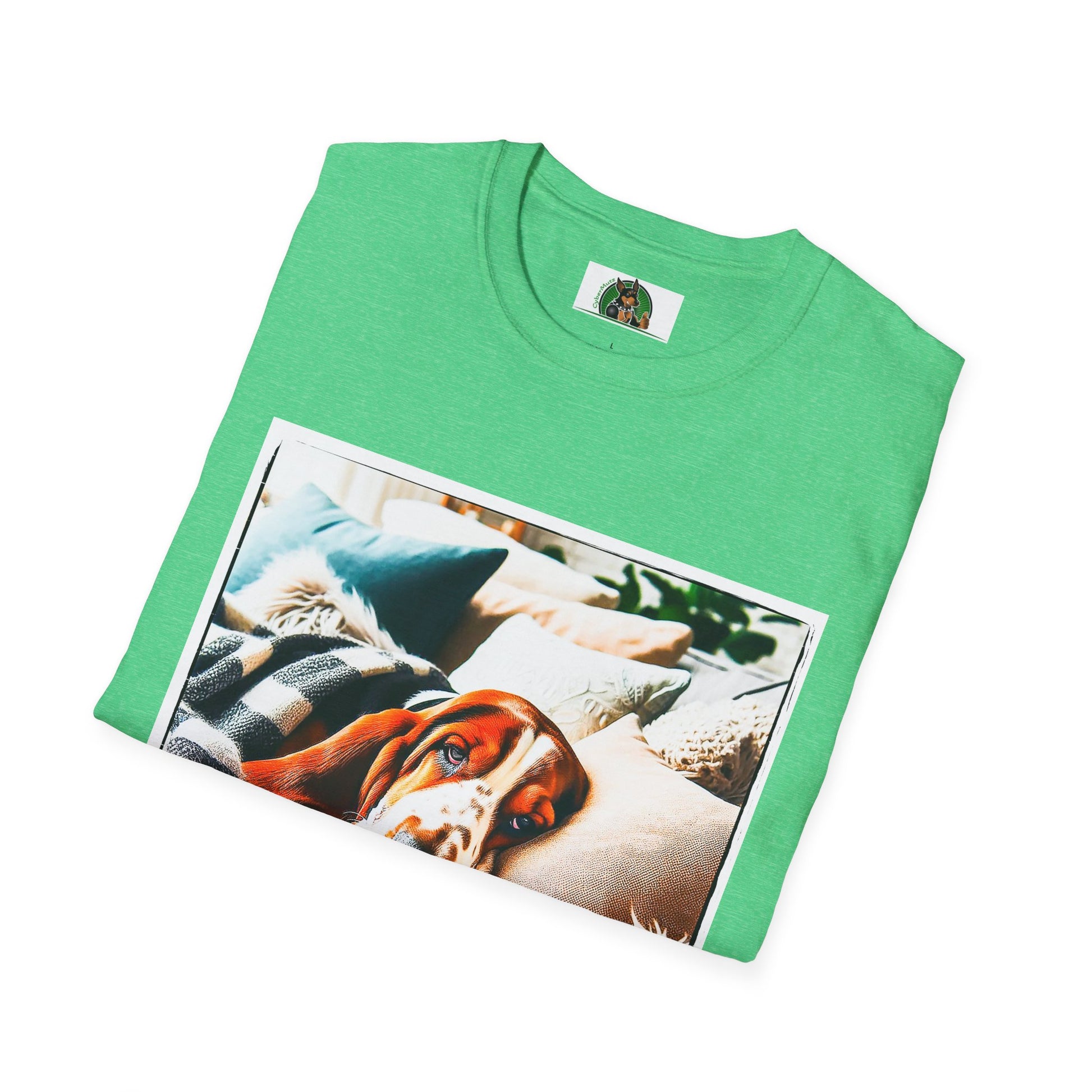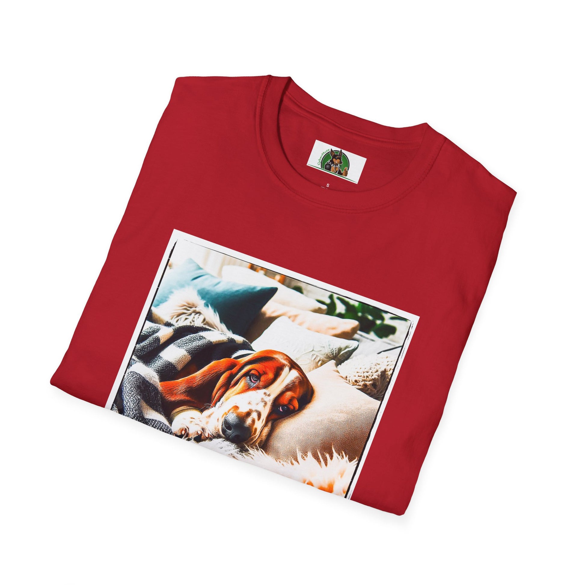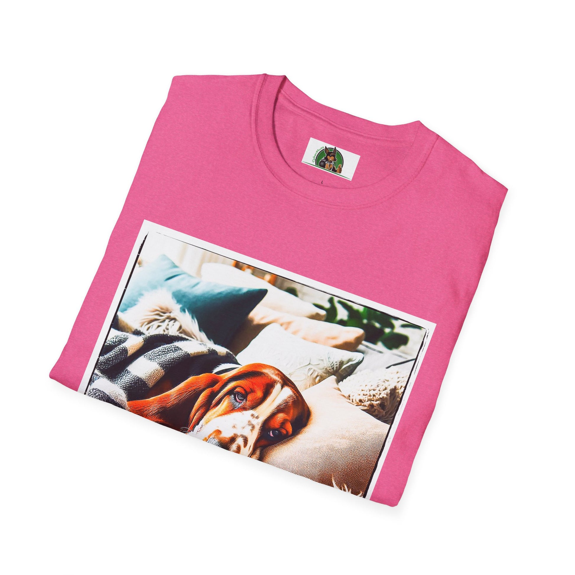 “Whether lounging on the couch or exploring new scents, Basset Hounds know how to relax and enjoy life. This T-shirt is a perfect tribute to the breed’s calm yet curious nature. With a stylish illustration of a laid-back Basset, it’s a comfy and fun choice for any proud Basset parent.”