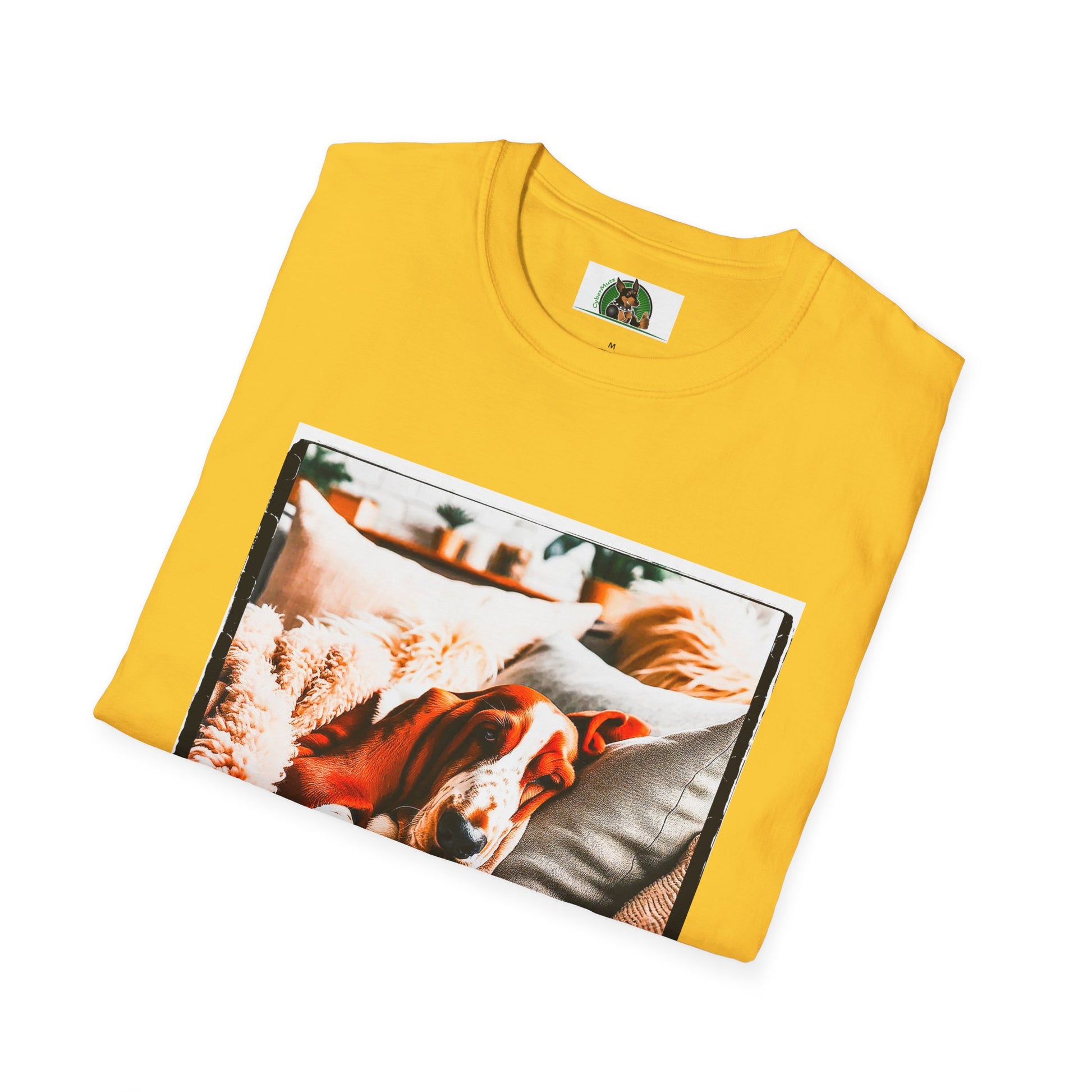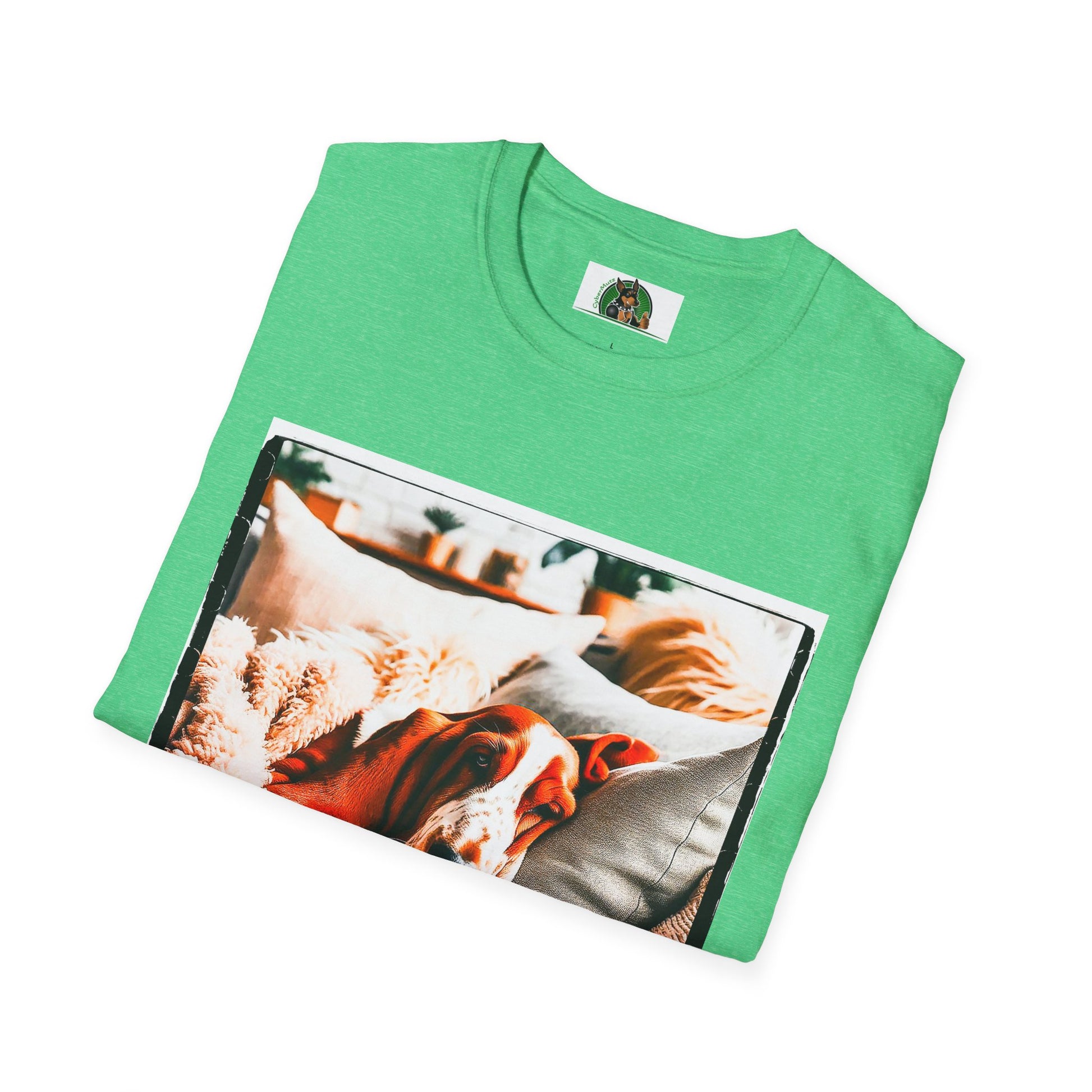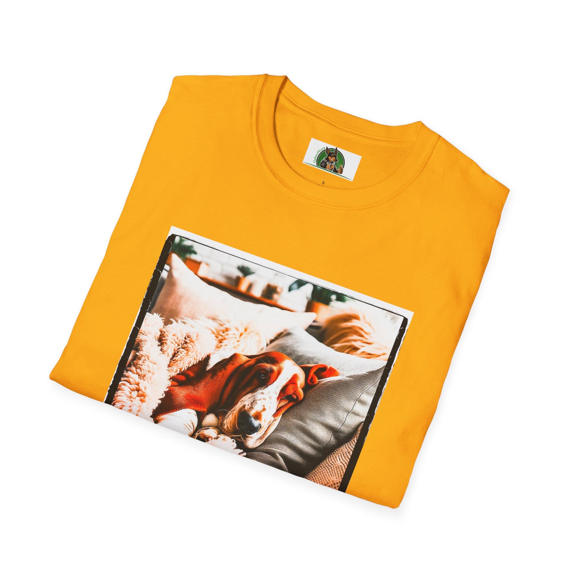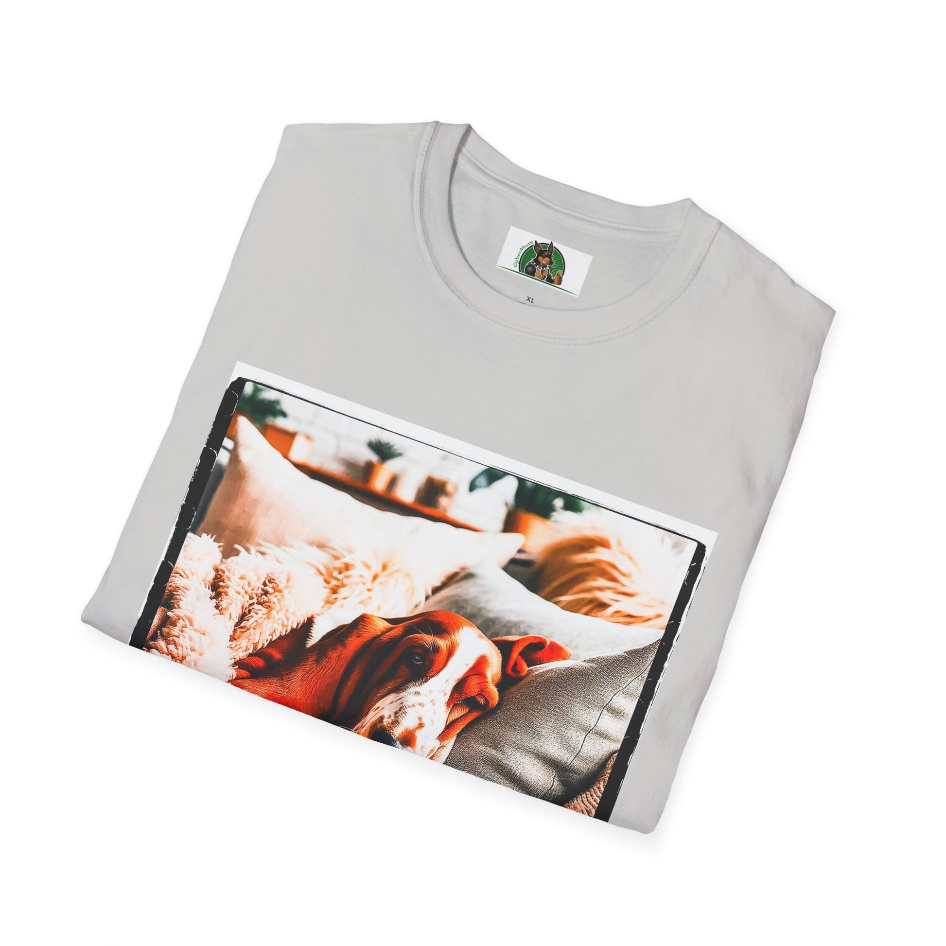 “Whether lounging on the couch or exploring new scents, Basset Hounds know how to relax and enjoy life. This T-shirt is a perfect tribute to the breed’s calm yet curious nature. With a stylish illustration of a laid-back Basset, it’s a comfy and fun choice for any proud Basset parent.”