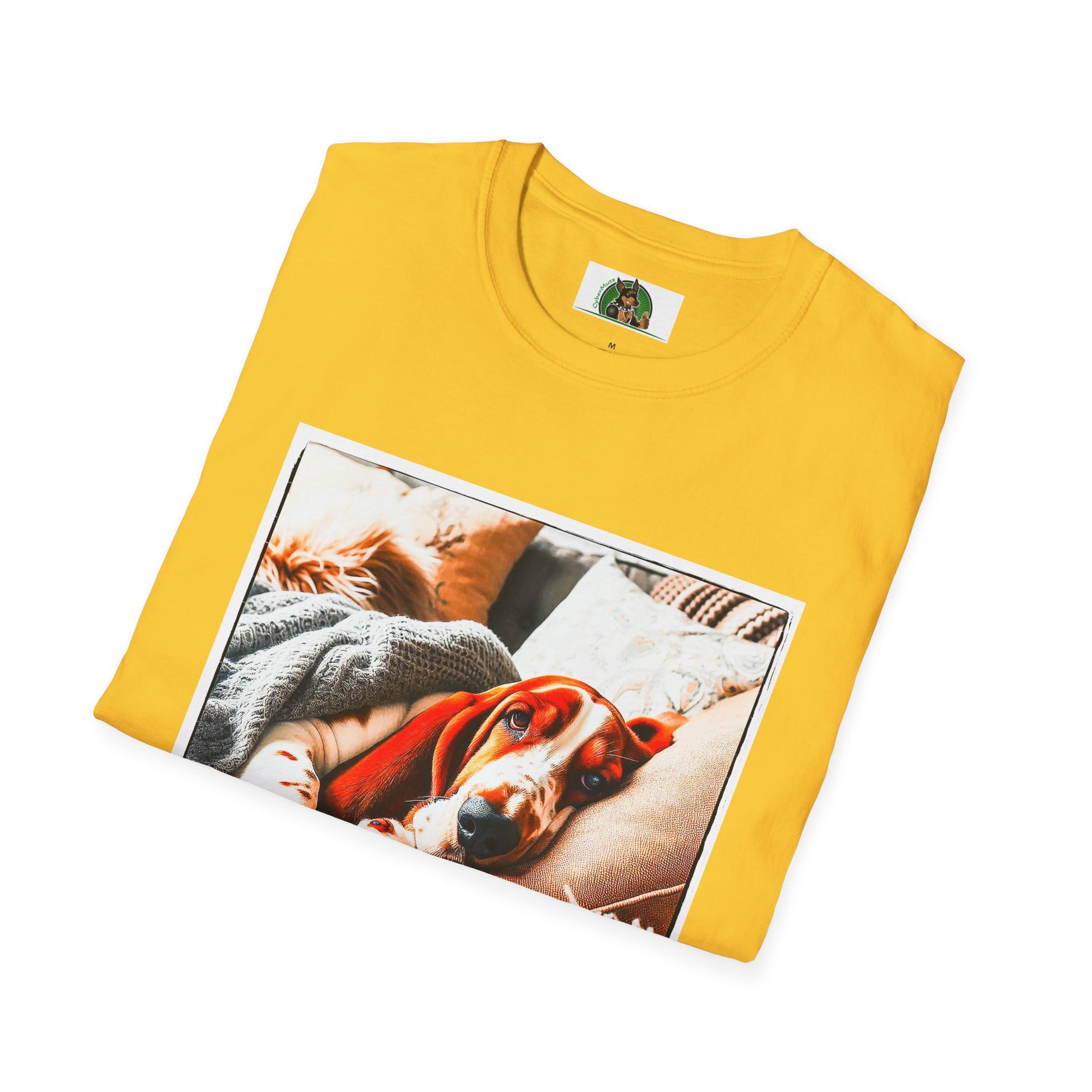 “Whether lounging on the couch or exploring new scents, Basset Hounds know how to relax and enjoy life. This T-shirt is a perfect tribute to the breed’s calm yet curious nature. With a stylish illustration of a laid-back Basset, it’s a comfy and fun choice for any proud Basset parent.”