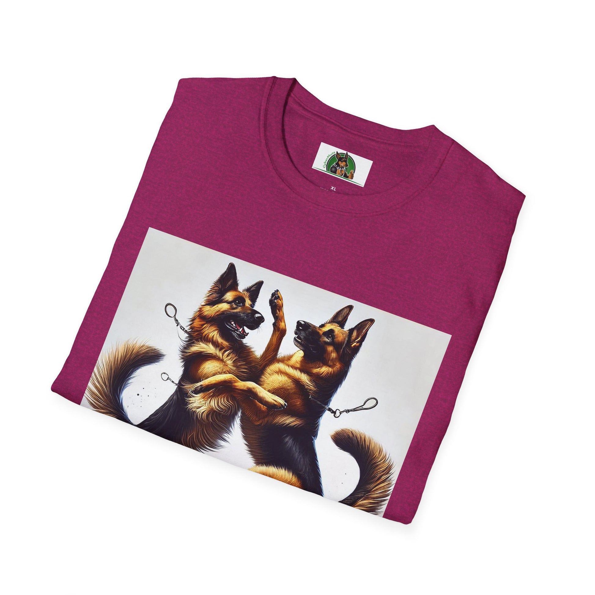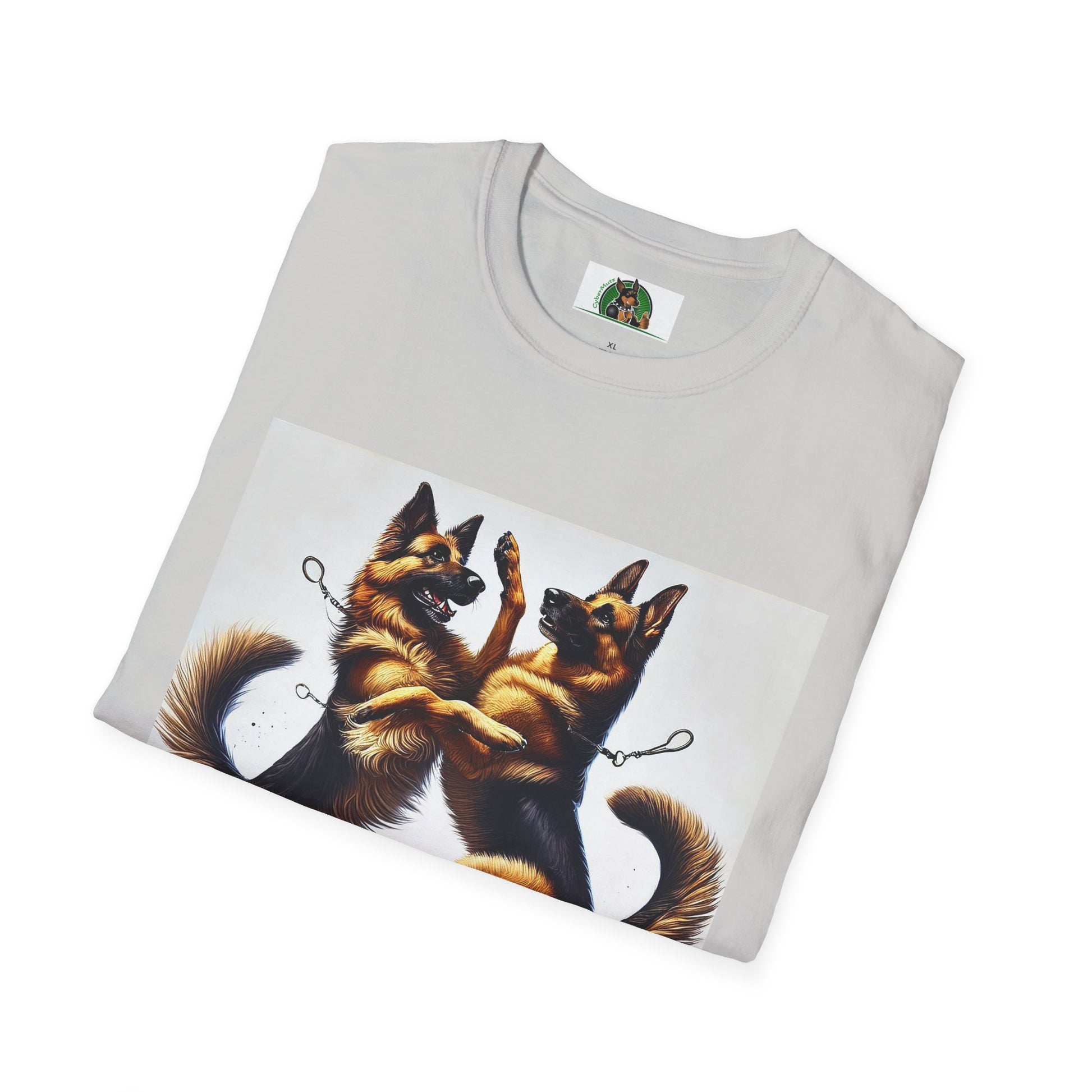 A classic and versatile unisex softstyle T-shirt featuring a dancing German Shepherd design. Made from durable and smooth ring-spun cotton, this shirt is perfect for all-year wear. The clean crew neckline and classic fit make it suitable for any occasion, whether formal or semi-formal. Ideal for adults who love German Shepherds and want a comfortable and stylish wardrobe staple. Perfect for dog lovers, animal enthusiasts, and pet owners. Great for casual wear, dog-related events, pet holidays, and everyday use.
