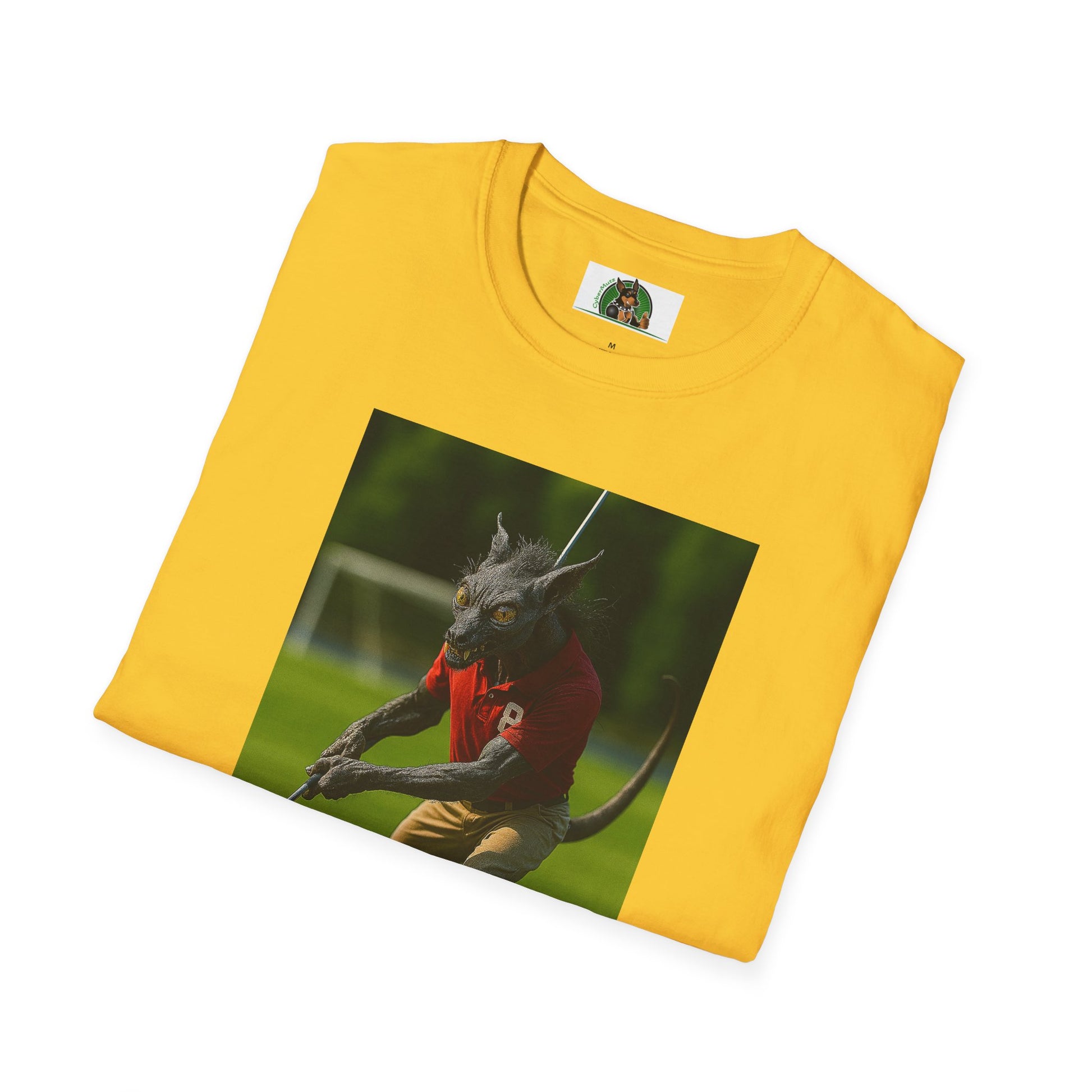 A quirky and fun T-Shirt featuring a sports chupacabra playing golf, perfect for those who enjoy a unique and playful style. This T-Shirt is ideal for casual wear and can be a conversation starter at social gatherings. It is relevant for golf enthusiasts and those who appreciate cryptid creatures. Great for birthdays, Father's Day, and casual everyday wear.