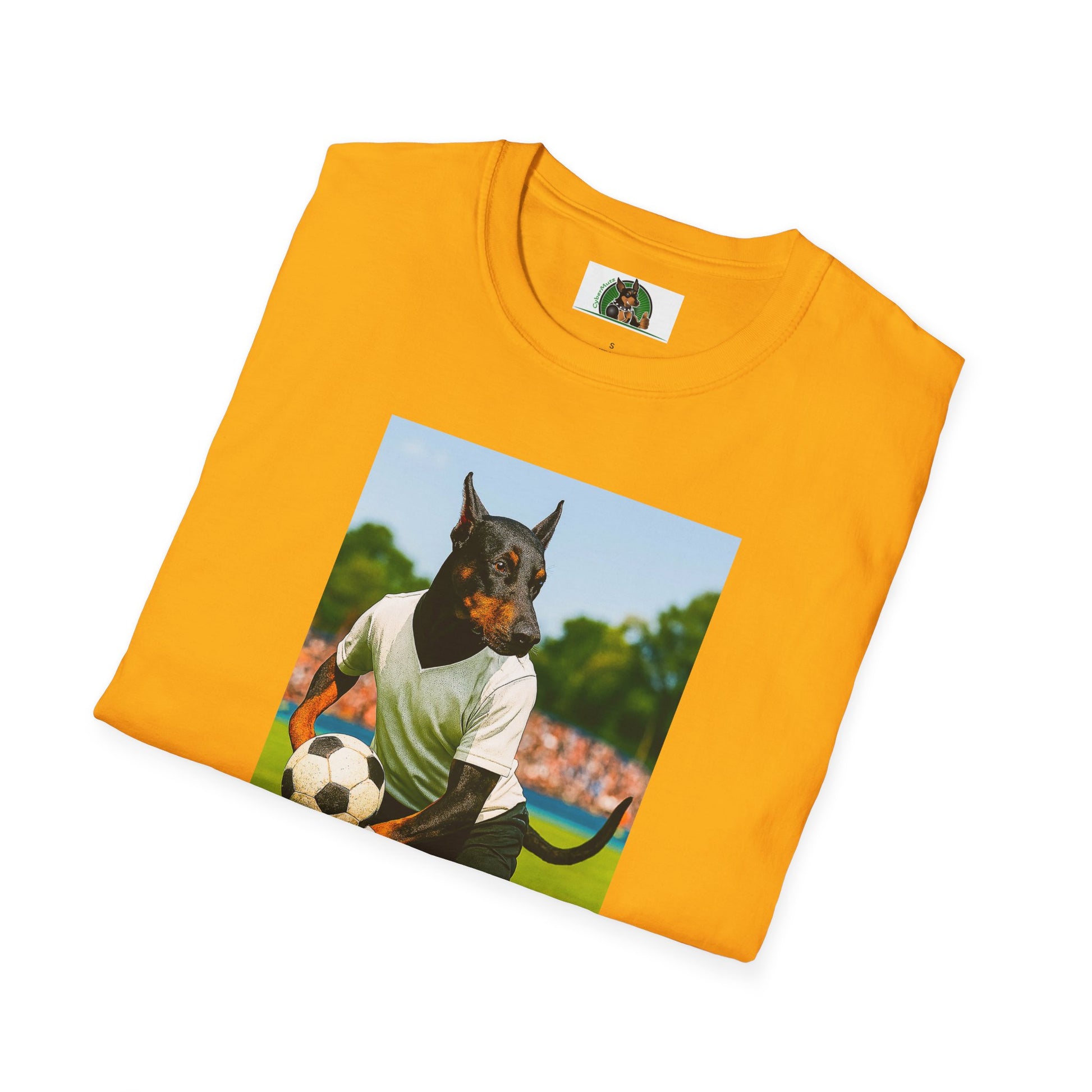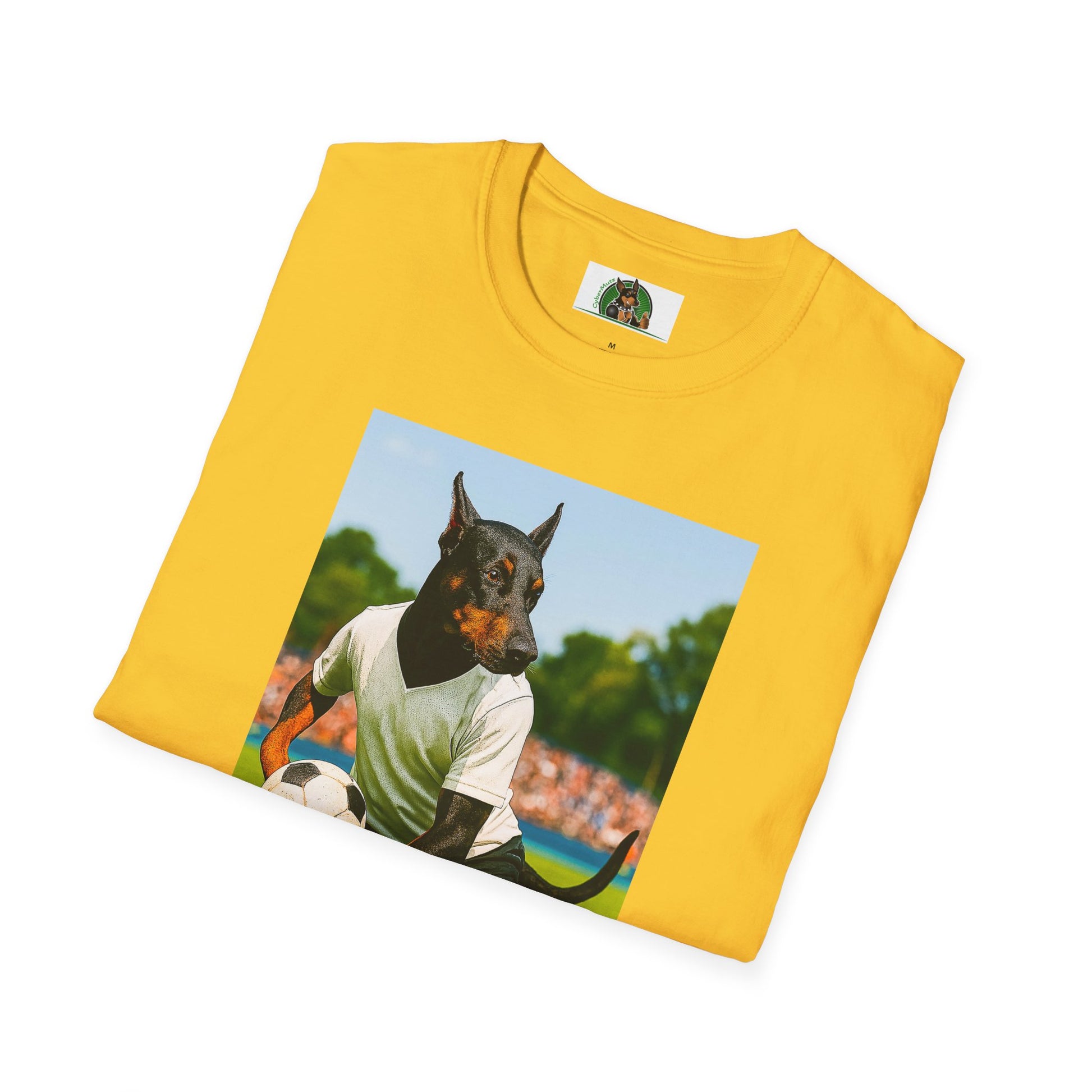 The Soccer Doberman Sports T-Shirt is perfect for sports enthusiasts and dog lovers alike. The design exudes energy and excitement, making it ideal for casual wear or sporting events. This unisex softstyle T-Shirt is made from durable fabric that is smooth and comfortable to wear. It is suitable for adults and has a classic fit with a crew neckline, making it versatile for any occasion.