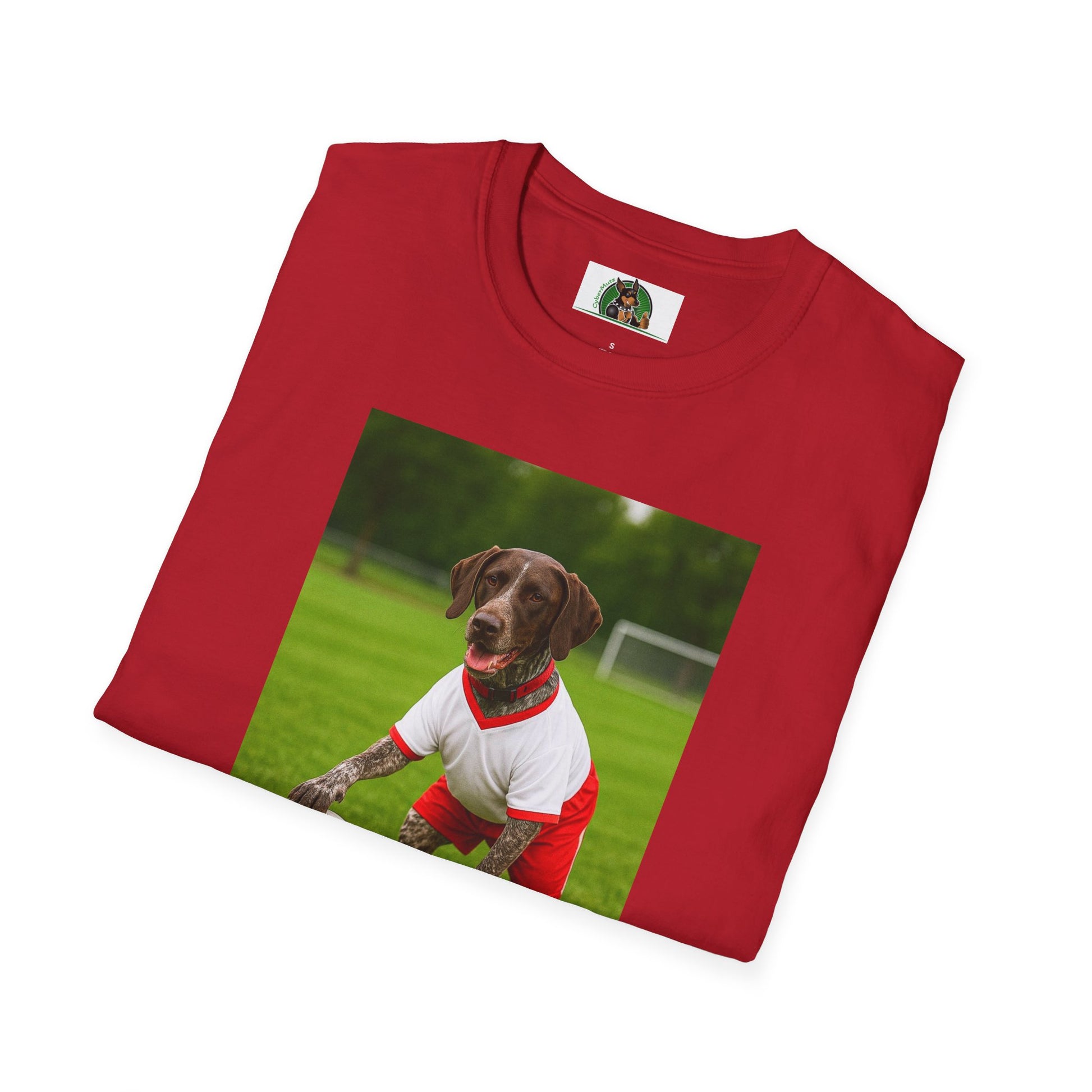Kick off match day with a tee that speaks to both the game and the dog you love. This lightweight jersey sits close to the chest without stiff fabric — wear it to weekend scrimmages or Sunday runs to the park. The German Shorthaired Pointer silhouette and soccer motif feel like a nod to fast breaks and long runs across grass at dusk. Let it be the shirt you reach for when you want to show team spirit and canine pride together: simple, breathable, and made to move.