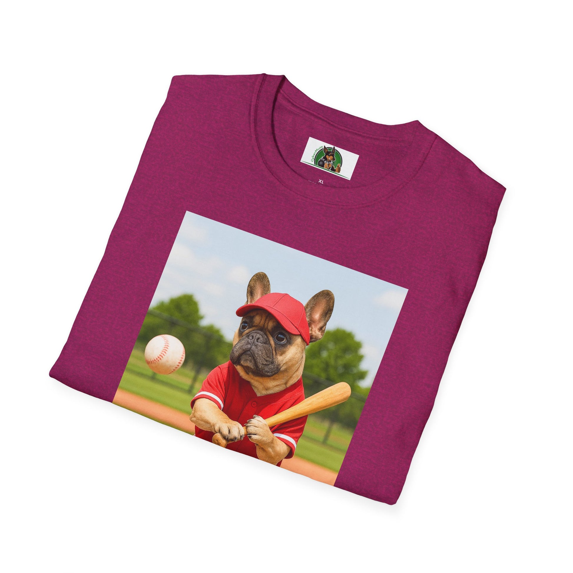 A Baseball French Bulldog Sports T-Shirt perfect for sports enthusiasts and dog lovers. This T-shirt exudes a fun and sporty vibe, ideal for casual wear or as a statement piece. Perfect for those who enjoy celebrating sports events, pet lovers, and anyone looking for a unique and playful addition to their wardrobe.